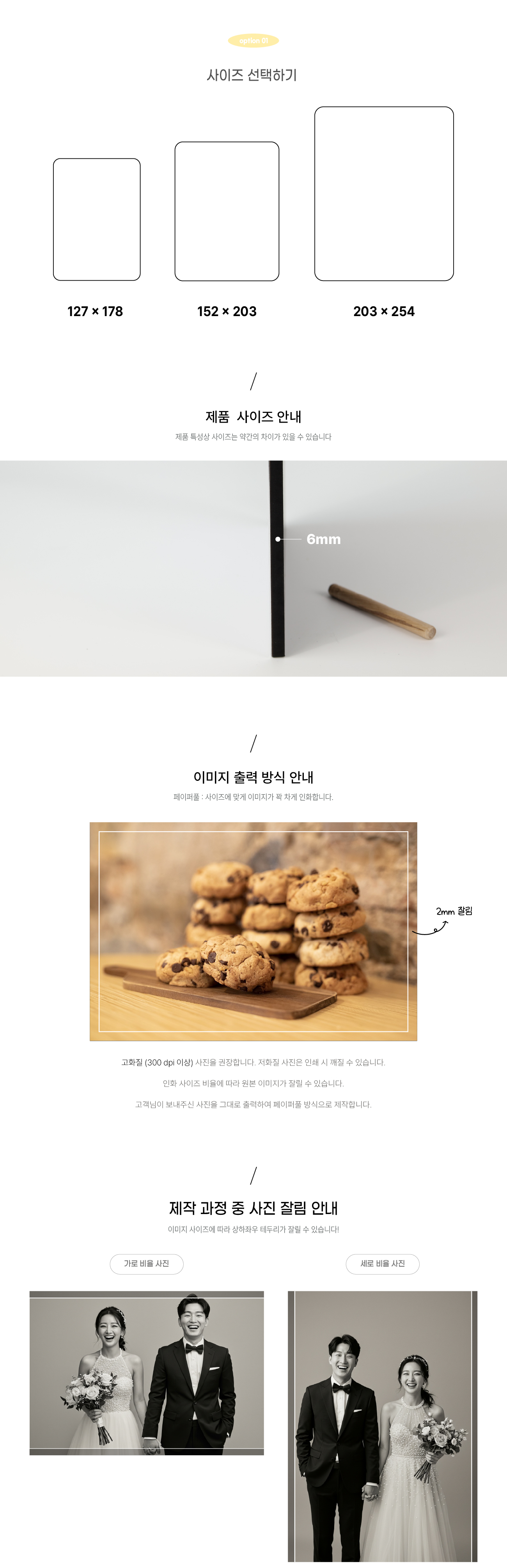 88×127, 127×178 (+4,000원), 152×203 (+7,000원), 203×254 (+15,000원)